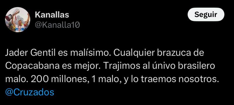 Tras la derrota en el Clásico Universitario, los hinchas de la UC sacaron cuentas del partido que se desarrolló en Independencia y cargaron el mal resultado a un jugador en específico: el delantero brasileño Jader Gentil.