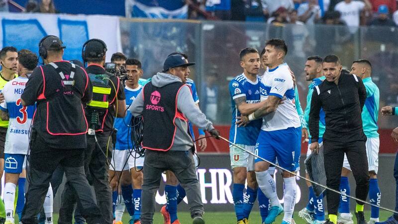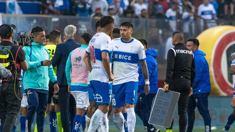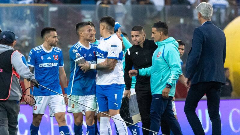 Una vez terminado el encuentro, se lanzó contra los jugadores azules que festejaban su triunfo, teniendo que ser contenido por Fernando Zampedri y, curiosamente, por Charles Aránguiz.