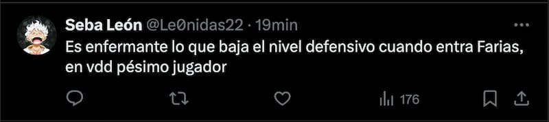 “Con Farías de libero imposible defender bien”, “Un técnico serio no lo vuelve a citar”, “No entiendo la insistencia con Farías”, son algunos de los comentarios/críticas de los hinchas precordilleranos.