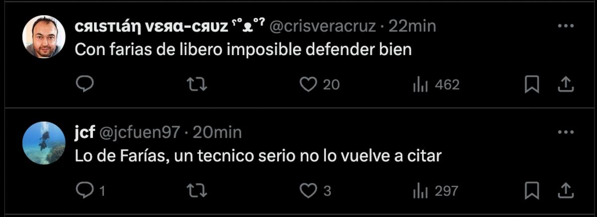 “Con Farías de libero imposible defender bien”, “Un técnico serio no lo vuelve a citar”, “No entiendo la insistencia con Farías”, son algunos de los comentarios/críticas de los hinchas precordilleranos.