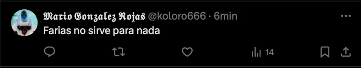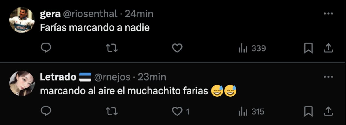 El rendimiento del volante central, quien se desempeñó como libero en la línea de tres en el fondo de Tiago Nunes, no gustó para nada a los fanáticos cruzados, quienes lo cuestionaron con todo en la red social X.