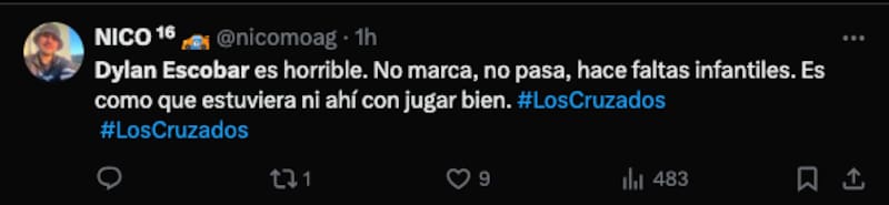 El nivel del equipo no es el mejor y se volvió notar este sábado en Chillán, donde los Cruzados generaron poco peligro y sufrieron bastante en defensa. La última línea fue de las más criticadas por los hinchas en redes sociales, siendo Dylan Escobar el que se llevó todos los dardos.