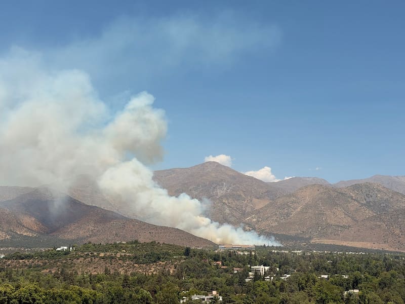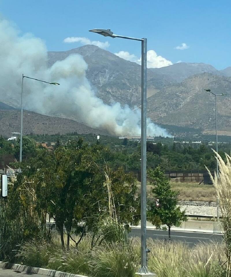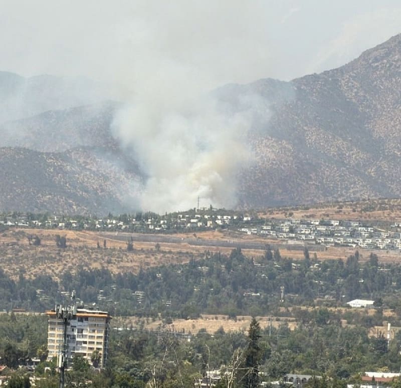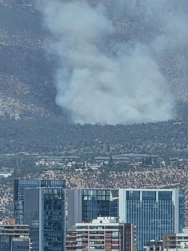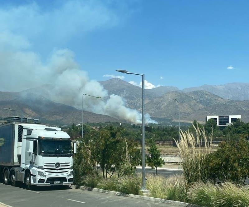 Un incendio se desató hoy lunes en ladera de un cerro ubicado en Las Condes, muy cerca del Claro Arena, el flamante estadio de Universidad Católica.