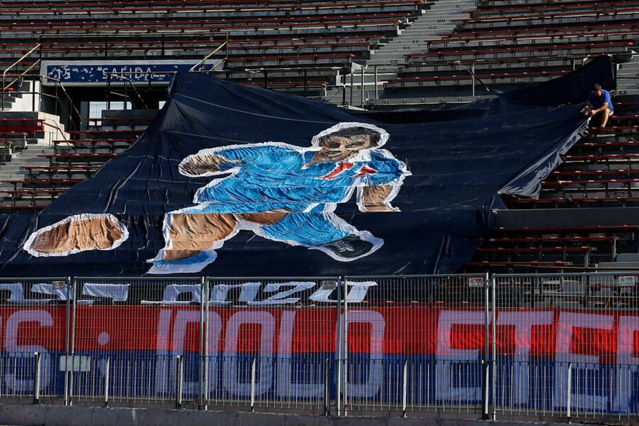 se desplegó un gran lienzo en el sector norte del Estadio y se ubicó también una gigantografía de Carlos Campos en el centro de la cancha