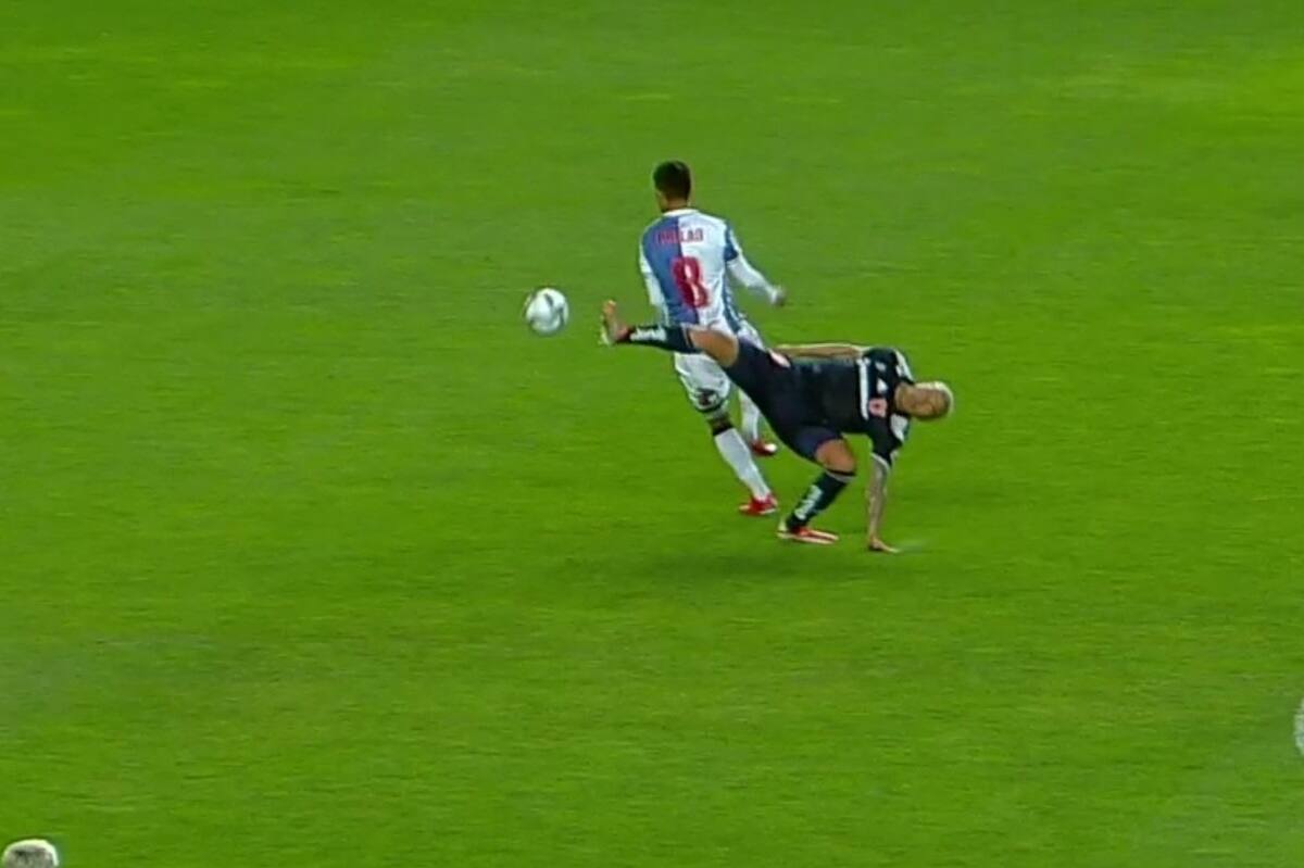 El jugador de lo azules fue en disputa del balón por los aires y cayó de mala forma, generando que su pierna izquierda se doblara de una forma muy brusca, hecho que originó un intenso dolor para el futbolista, que fue sacado en ambulancia del estadio y llevado a un centro asistencial.