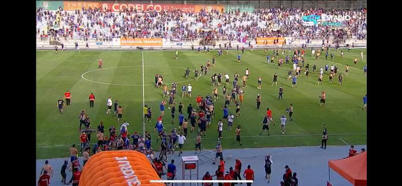 Tal como se pudo apreciar en la señal oficial del torneo de Primera División, un gran número de hinchas presentes en el reducto de Rancagua saltó la seguridad e ingresó a la cancha para encarar a ciertos nombres del plantel. Según informó TNT Sports, el primero y principal afectado fue Thomas Rodríguez.