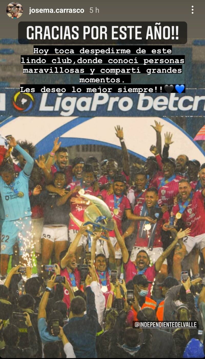 El seleccionado boliviano de 24 años se despidió de Independiente del Valle, club con el que termina su préstamo a fines de diciembre, debiendo volver al Blooming. El futbolista agradeció al equipo y a los hinchas que acompañaron al conjunto en el título de la Serie A de Ecuador.