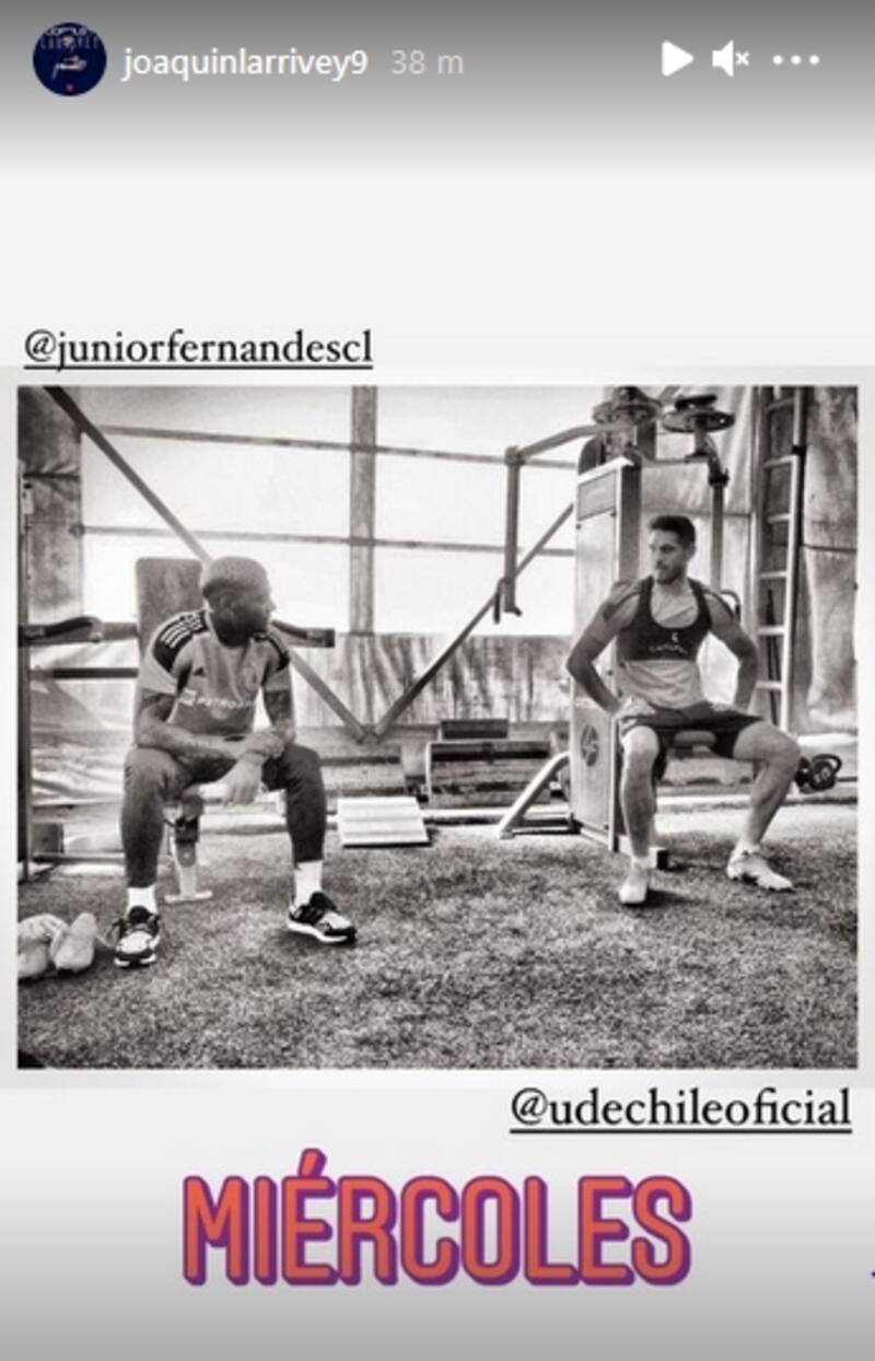 De igual forma el experimentado futbolista de 37 años subió una fotografía en el gimnasio del CDA junto a Junior en sus historias de Instagram, la que fue reposteada por el ex jugador del Bayer Leverkusen.