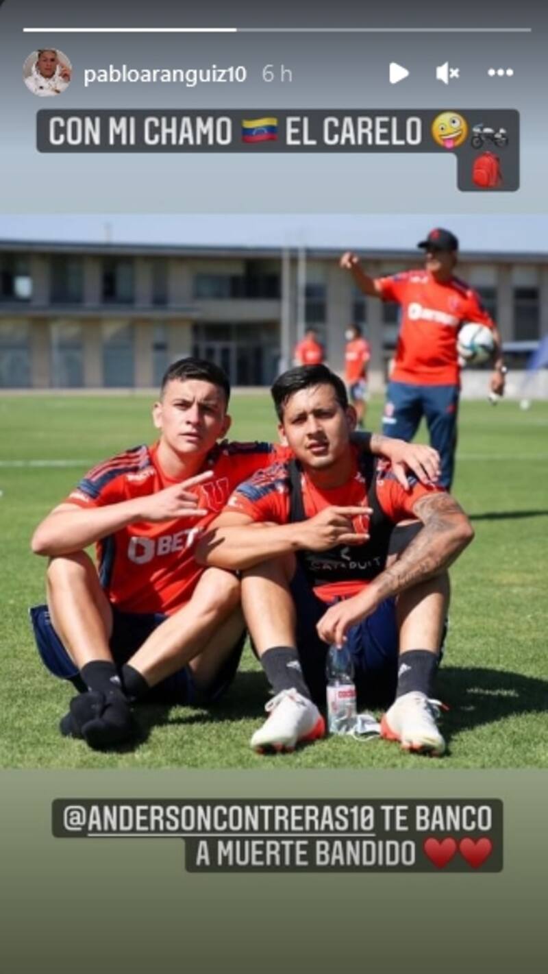Dentro de eso el extremo Pablo Aránguiz ya está haciendo los primeros lazos de amistad con el mediocampista venezolano Anderson Contreras, quien arribó a la U en septiembre de 2021 y debido a una larga recuperación por una grave lesión en su rodilla izquierda no ha podido debutar hasta ahora, pero su estreno estaría próximo.