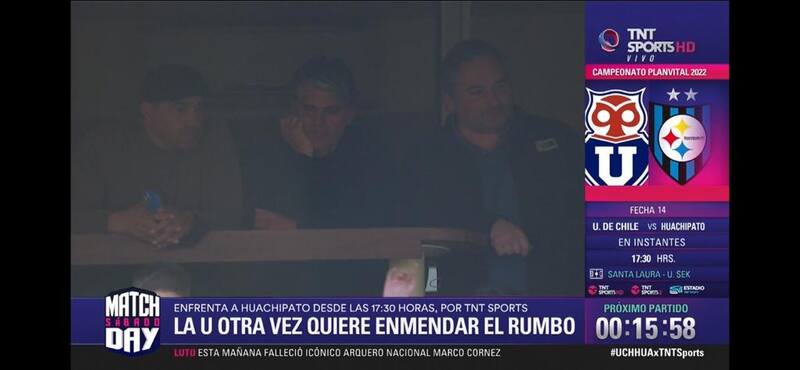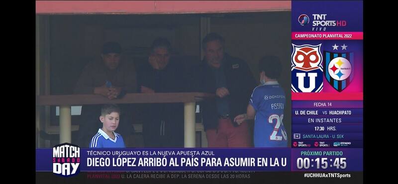 Las cámaras de la transmisión oficial captaron al entrenador uruguayo en una de las casetas del recinto de la comuna de Independencia, que será el nuevo DT de la U para afrontar la segunda rueda del Campeonato Nacional.
