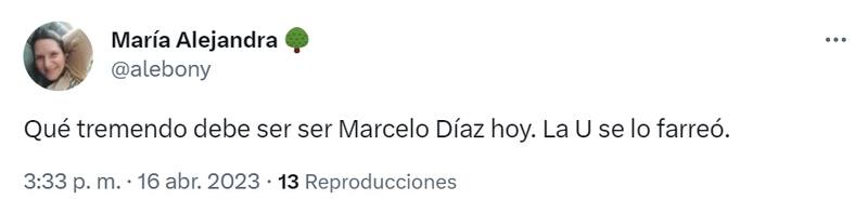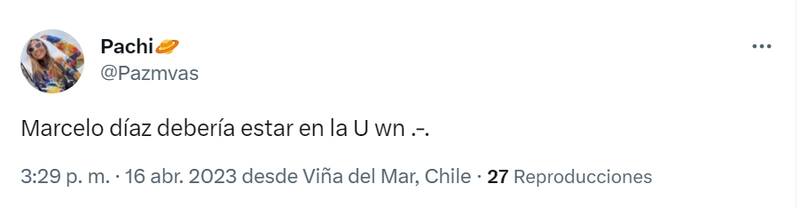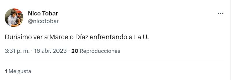 “Qué tremendo debe ser ser Marcelo Díaz, la U se lo farreó” o “durísimo ver a Marcelo Díaz enfrentando a la U” fueron parte de los comentarios. Cabe destacar que el volante pudo volver a los azules durante el último mercado de fichajes., sin embargo, su arribo no fue visado por Mauricio Pellegrino y terminó recalando en La Florida.