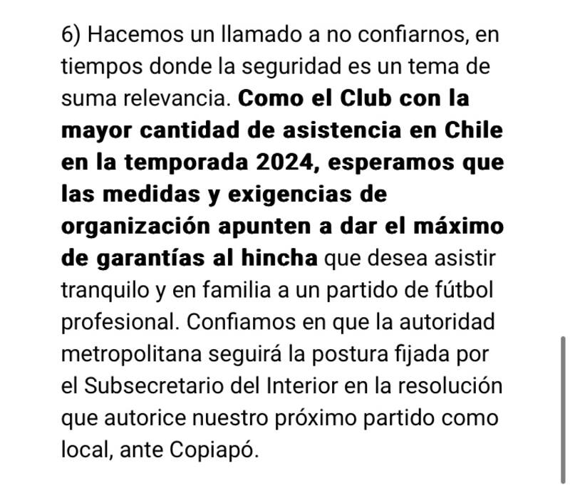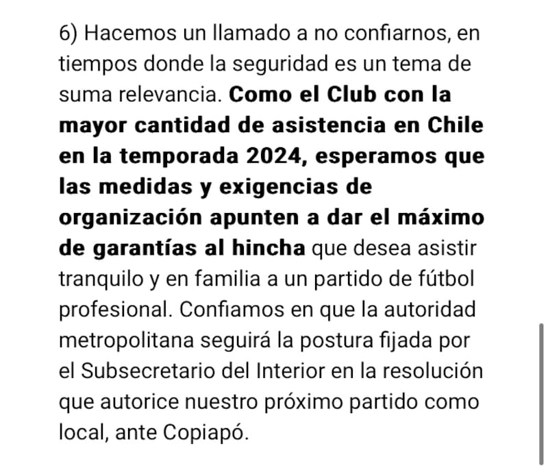 También el de los fichajes, pues si llega o no Charles Aránguiz se ha vuelto una verdadera teleserie. Pero un aspecto del que poco se habla y del que hay molestia en el CDA es la seguridad en los partidos, algo que recientemente sufrió una importante modificación y que hizo saltar las alarmas en la regencia azul, como quedó demostrado en un comunicado público realizado este miércoles.