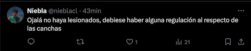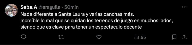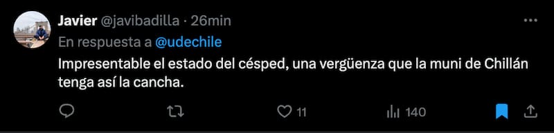 Desde antes del pitazo inicial, el paupérrimo estado del terreno de juego generó duras críticas de los hinchas, quienes cuestionaron que el césped del recinto chillanejo no estuviera en condiciones para albergar un partido de Primera División, ni siquiera de fútbol profesional.