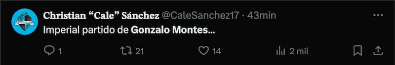 Frases como “Imperial partido de Gonzalo Montes” y “Qué jugador es Gonzalo Montes” se repitieron entre los comentarios, generando también reacciones entre los fanáticos de Universidad de Chile.