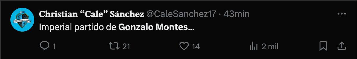 Frases como “Imperial partido de Gonzalo Montes” y “Qué jugador es Gonzalo Montes” se repitieron entre los comentarios, generando también reacciones entre los fanáticos de Universidad de Chile.