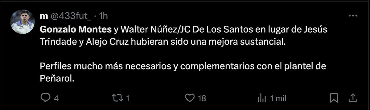 Su rendimiento no solo fue valorado por los seguidores de Torque, sino que también recibió elogios de hinchas de Nacional e incluso de Peñarol, quienes coincidieron en destacar su nivel en redes sociales.