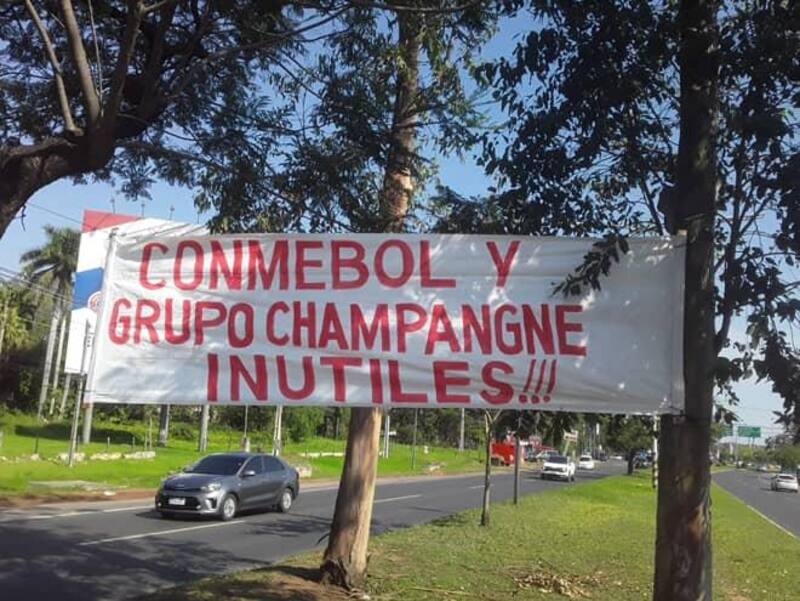 Pero los hinchas del Rojo no olvidan cómo quedaron fuera por secretaría y se viralizaron dos carteles que dejaron en las cercanías de la sede de la Confederación Sudamericana de Fútbol en Asunción.