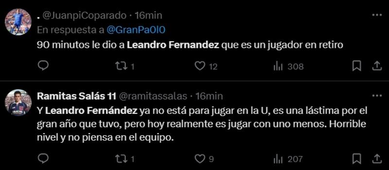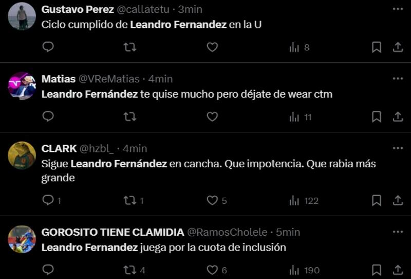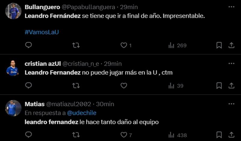 “Es impresentable. Se tiene que ir”, “es un exjugador”, “molesta más que aporta”, fueron algunos de los comentarios que deslizaron los fanáticos de Universidad de Chile en X (anteriormente Twitter).