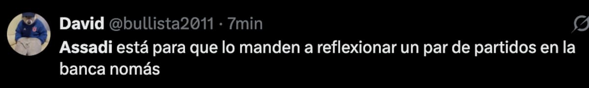 De “Aún no está a nivel”, hasta “Pareciera que no quiere correr”, fueron parte de los reclamos de los azules a través de X. La mayoría, incluso, llegó a la conclusión de que era una mala idea dejarlo como estelar, por nombres como Ignacio Vásquez.
