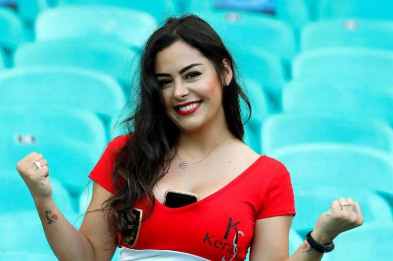 Y es que la reconocida hincha llegó al Arena Fonte Nova y desplegó toda su belleza y sensualidad en las gradas, donde posó para las cámaras y comandó a la barra paraguaya.