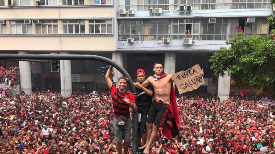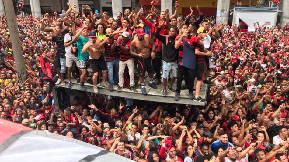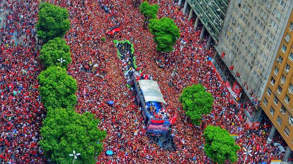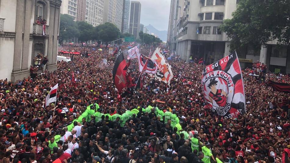 Tras el festejo en Lima, el plantel llegó a Rio de Janeiro donde lo esperaban calles repletas de hinchas que no solo los querían acompañar a celebrar su primera Libertadores en más de 38 años, sino que se enteraban que ganaban el Brasileirao sin jugar esta fecha, gracias al tropiezo de Palmeiras ante Gremio.