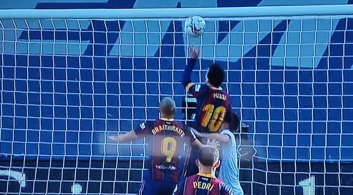 Antes de la primera conversión del cuadro blaugrana, en el minuto 29', el astro de la albiceleste se ve, según se aprecia en las imágenes, intentando meter el balón con su mano, por lo que los medios de comunicación rápidamente comenzaron a especular con la confusa jugada.