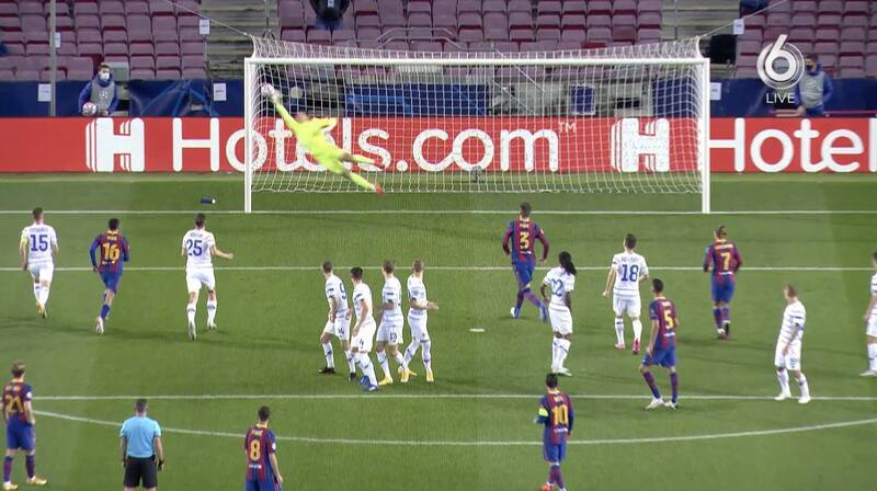 El joven de 18 años, que fue titular en el duelo por Champions League por el brote de coronavirus que afectó al equipo, tuvo una gran atajada al astro argentino, que buscó convertir mediante un tiro libre. Neshcheret voló a su derecha, sacó el balón que se colaba en el ángulo y evitó la segunda conquista de Messi, que abrió la cuenta mediante un penal cuando iniciaba el partido.