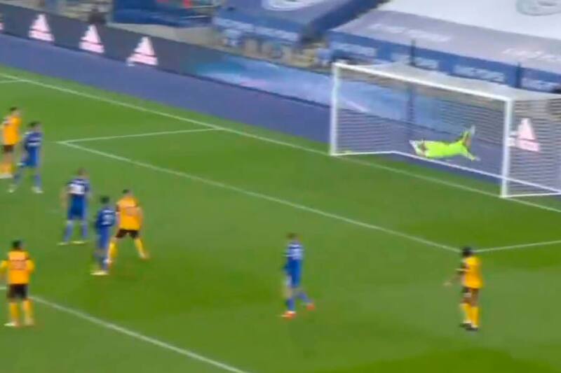 Ruben Neves disparó de gran forma a la escuadra, teniendo el guardameta estirarse y manotear a mano cambiada,