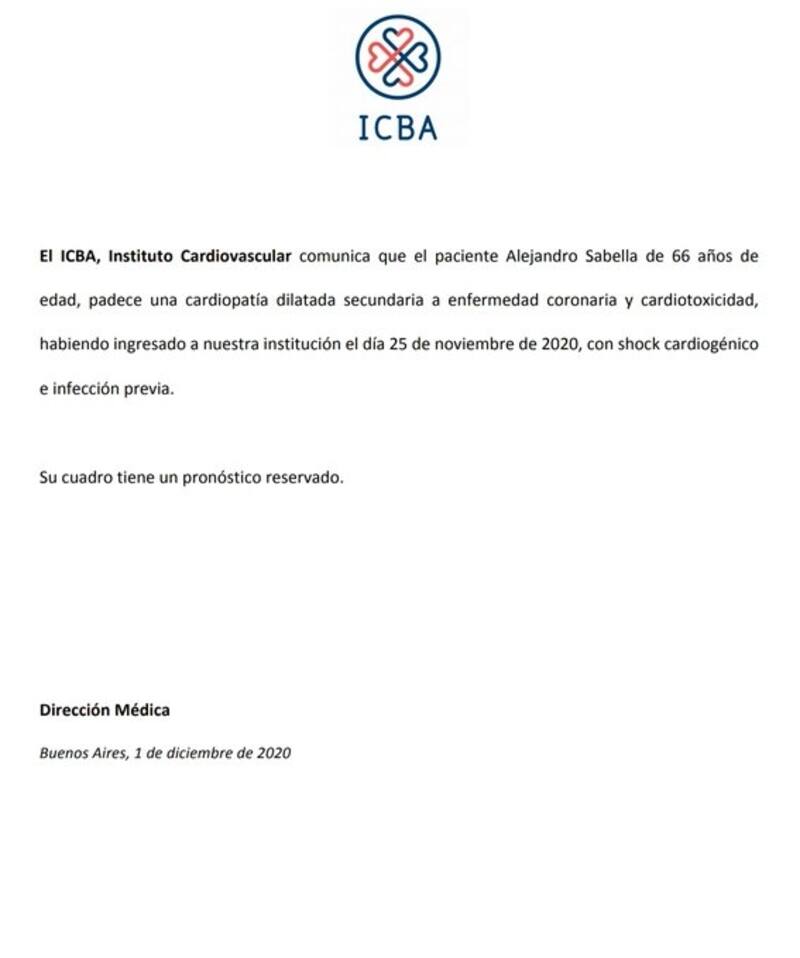 El Instituto Cardiovascular de Buenos Aires confirmó que la situación era de pronóstico reservado: