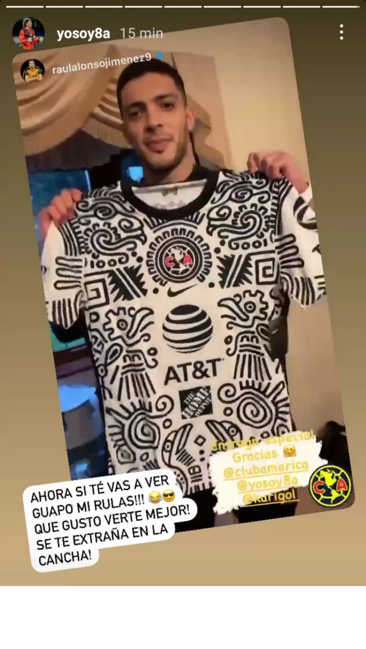 Raúl Jiménez, exdelantero del América presumió la nueva camiseta del club, detalle cortesía de Guillermo Ochoa, el arquero del equipo y de la Selección Mexicana.