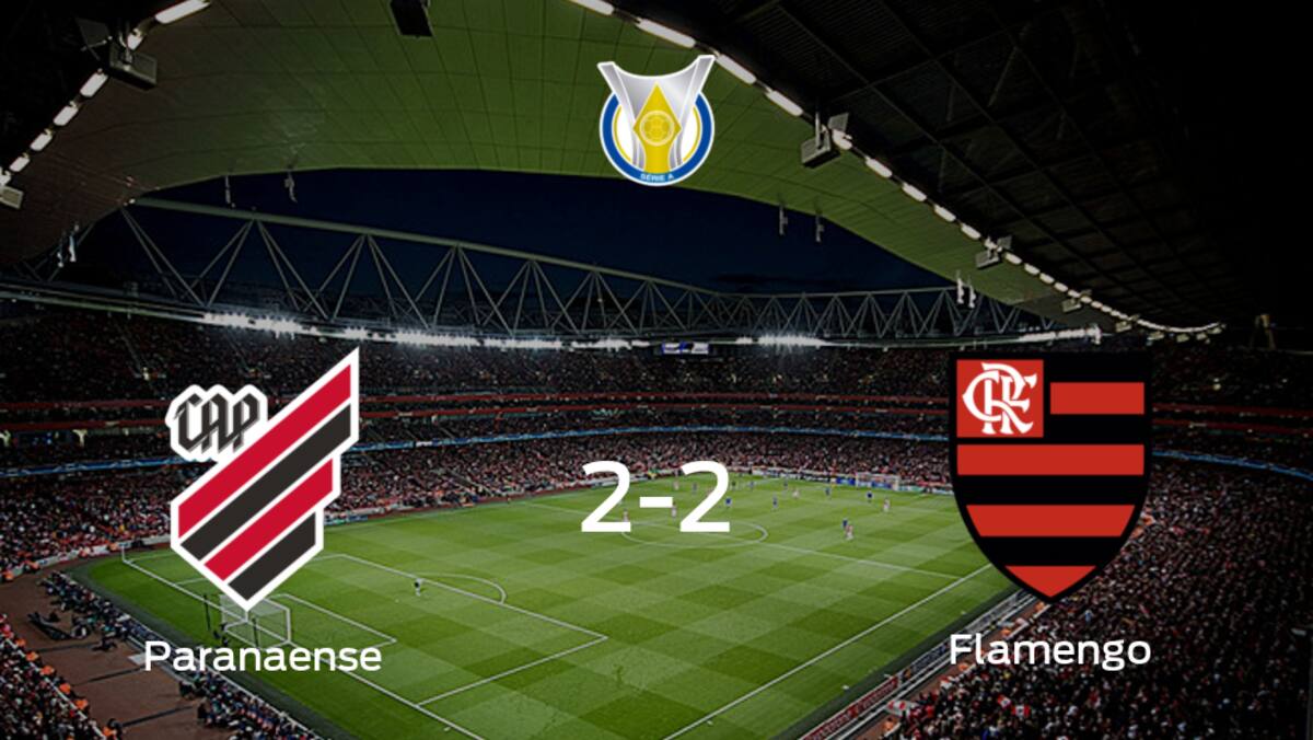 Paranaense y Flamengo empataron a dos en el partido celebrado este martes en el Arena da Baixada. Athletico Paranaense llegó con la intención de retornar al camino de la victoria después de sufrir una derrota por 1-0 en el partido anterior ante Santos FC y con una racha de tres derrotas seguidas en la competición. En el lado de los visitantes, Flamengo venía de vencer 1-0 en casa a Atl. Mineiro en el último partido celebrado. Tras el resultado obtenido, el equipo local se situó en decimoquinta posición, mientras que Flamengo se quedó en tercer lugar al concluir el partido.