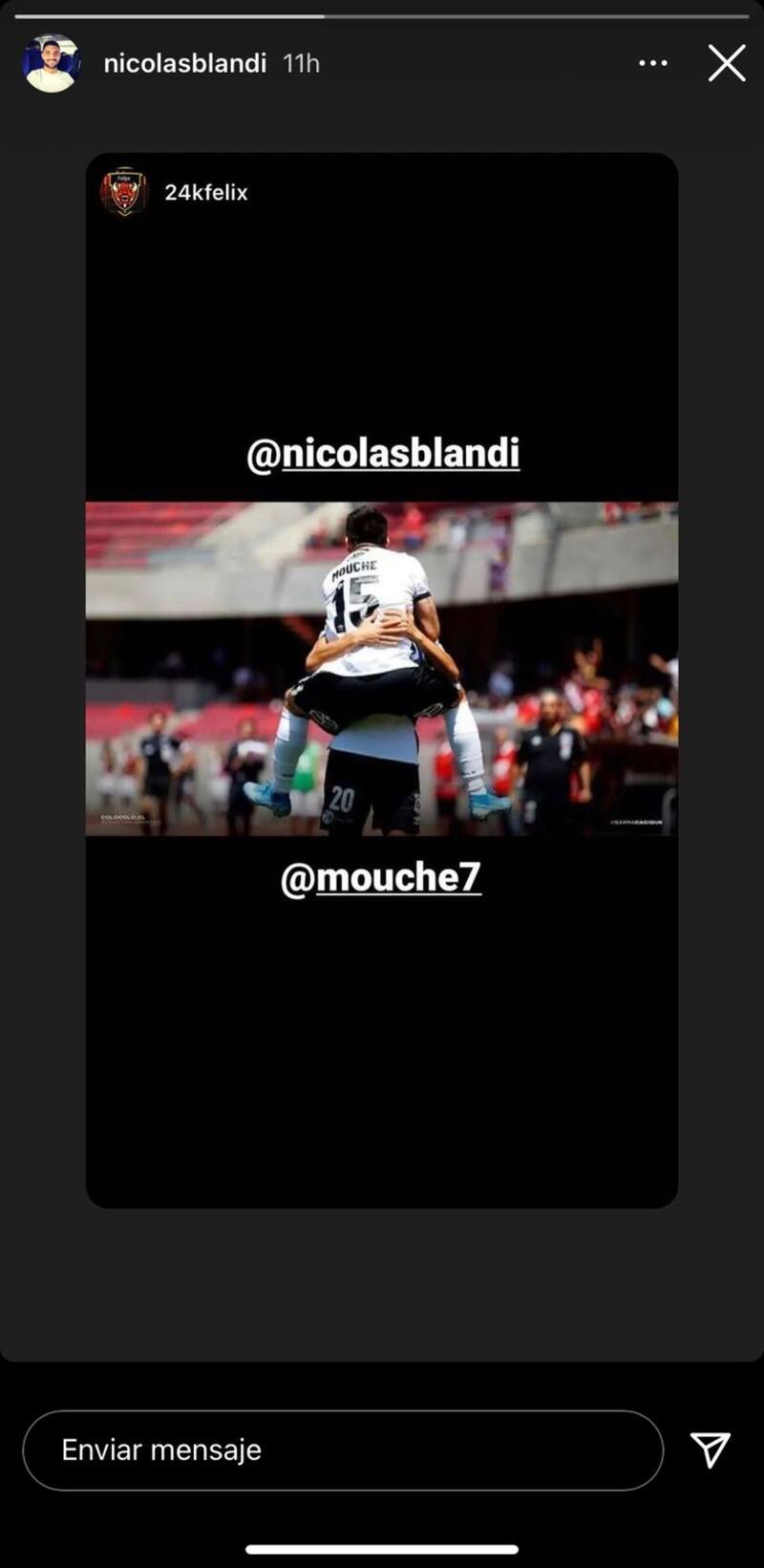 En medio de la incertidumbre y de su búsqueda por un nuevo club, Nicolás Blandi, le hizo un guiño a Colo Colo a través de sus redes sociales. Sin ninguna razón aparente, el jugador de 31 años compartió junto a en su cuenta de Instagram una foto, en la que aparece abrazándose con Pablo Mouche tras un gol con los albos.