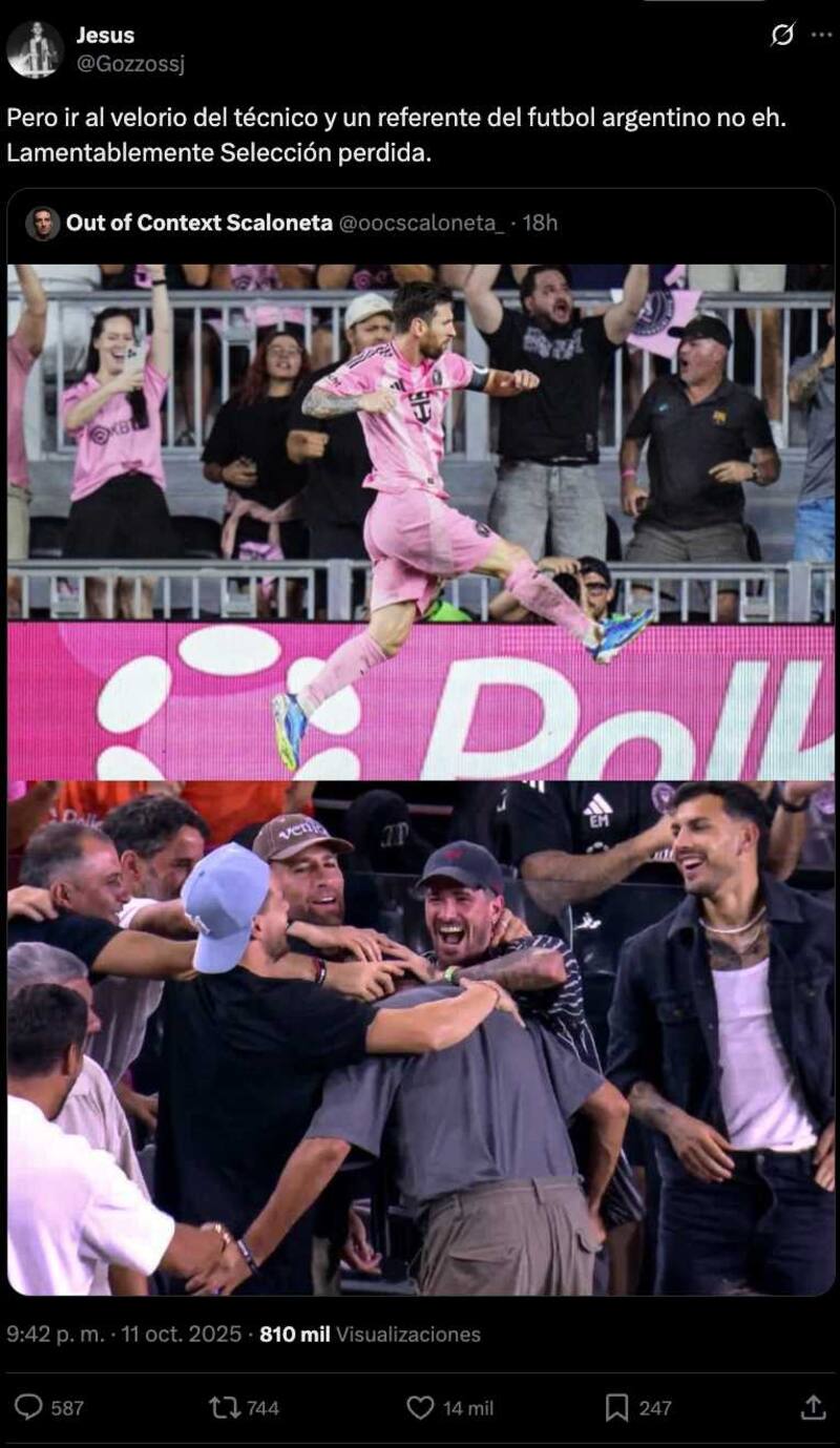 Las redes sociales se incendiaron este sábado en la noche cuando vieron a jugadores de la Selección Argentina celebrar en las tribunas los goles de Lionel Messi en Inter Miami.