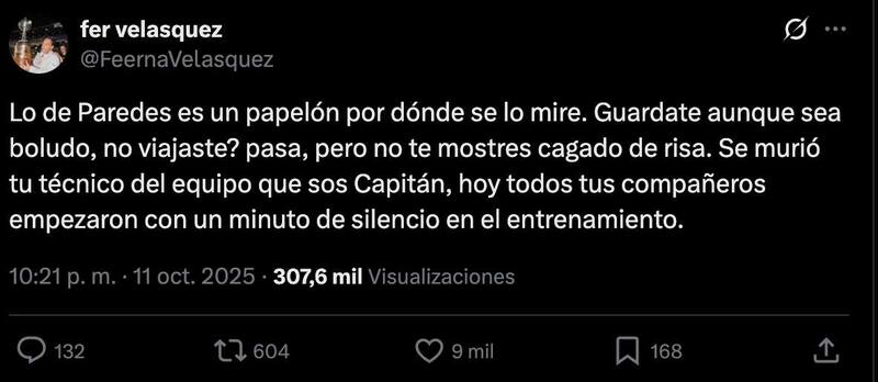 Ya había causado comentarios divididos que jugara el viernes con Argentina en vez de viajar de vuelta a su país para asistir al funeral de Russo. En la opinión de fanáticos de Boca en X (Twitter), a quien lleva la jineta le correspondía rendirle honores en La Bombonera en vez de este amistoso.