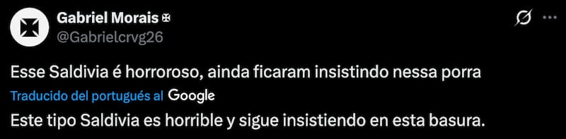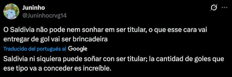 Sin embargo, los fanáticos del Vasco da Gama no quedaron para nada contentos con su rendimiento. En redes sociales, específicamente X, estallaron contra Saldivia y su estilo de juego, ya que se equivocó en varias salidas, regalándole el balón al rival y, solo por suerte, salvándose de que terminaran en gol.
