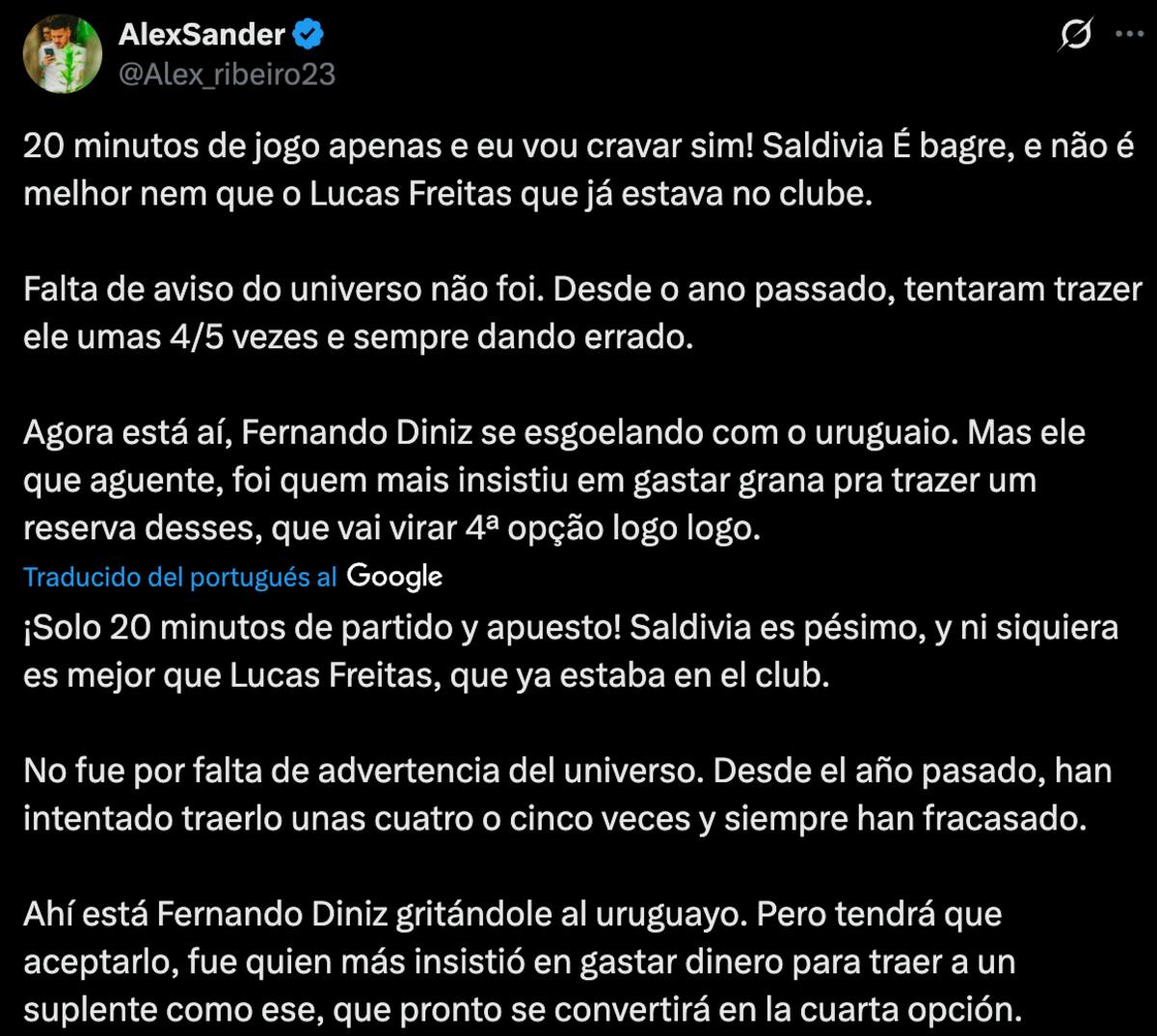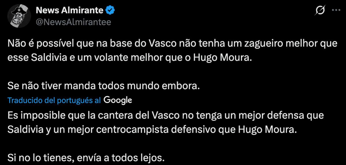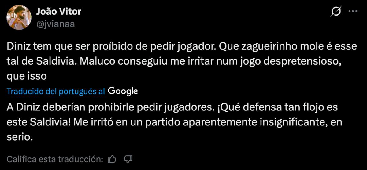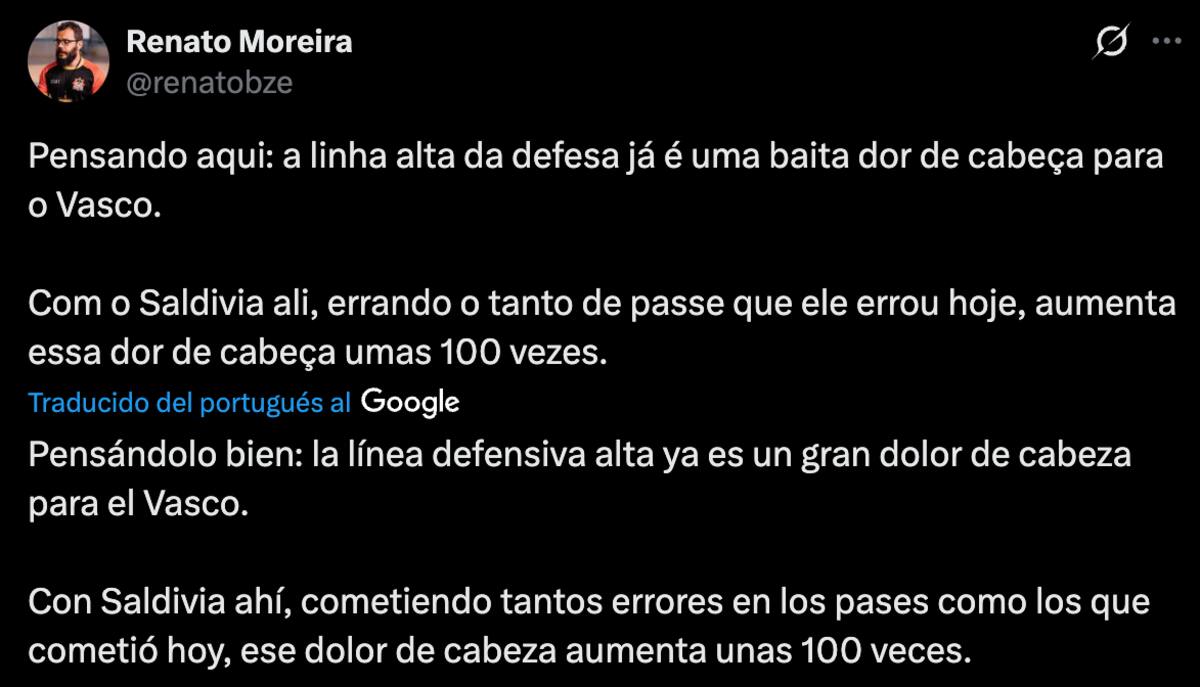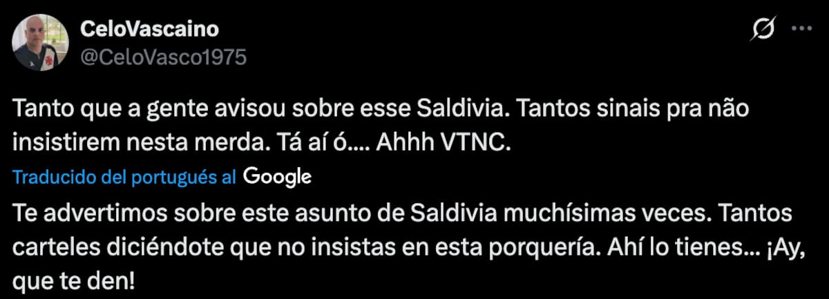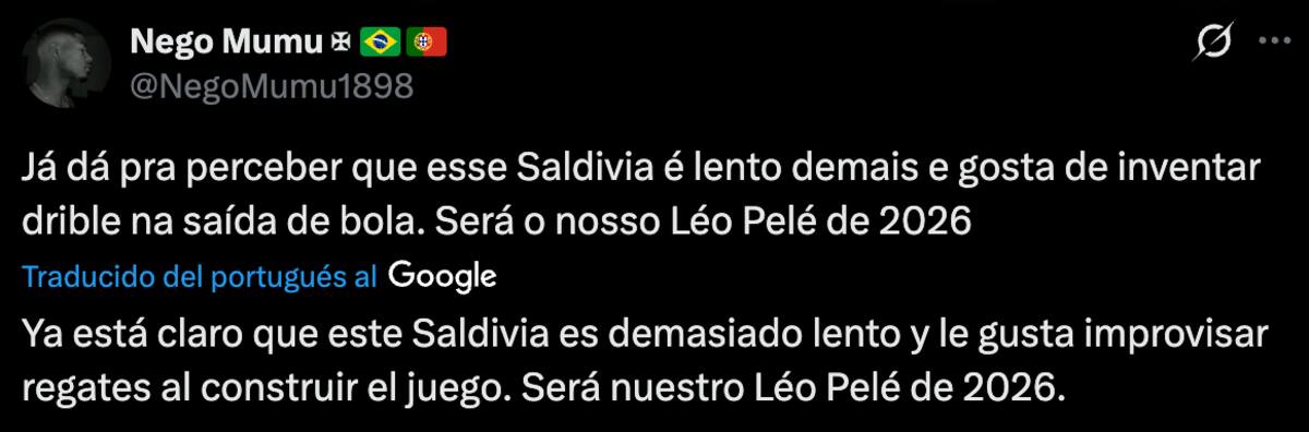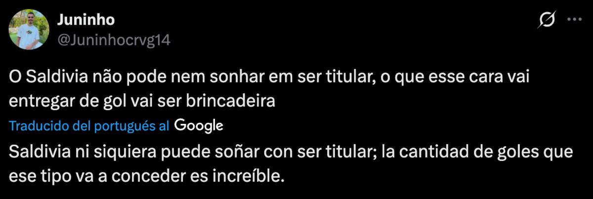 Sin embargo, los fanáticos del Vasco da Gama no quedaron para nada contentos con su rendimiento. En redes sociales, específicamente X, estallaron contra Saldivia y su estilo de juego, ya que se equivocó en varias salidas, regalándole el balón al rival y, solo por suerte, salvándose de que terminaran en gol.