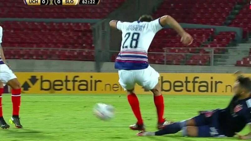 Un poco más de ocho años después, el jugador de 34 años realizó una acción similar sobre Larrivey, que inmediatamente se quejó y le mostró las consecuencias de la entrada al juez del compromiso, quien sólo al ver la pierna del delantero decidió expulsarlo.