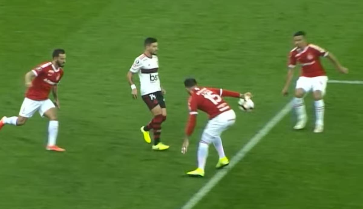 En cuartos de final, el árbitro volvió a estar presente en el duelo entre Flamengo vs Inter de Porto Alegre. Una de las jugadas que marcó este partido fue el penal no cobrado al "Fla", luego del centro de Giorgian de Arrascaeta que impactó en la mano del defensa Víctor Cuesta. El futbolista del "Colorado" estaba en la línea del área, sin embargo, el juez cobró tiro libre.