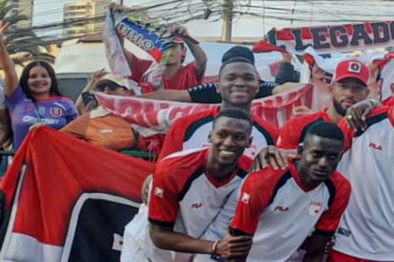 No es de extrañar que al conjunto bogotano le dieran una bienvenida considerable en la capital de la Región de Tarapacá, debido a la numerosa colonia de colombianos que reside en el norte. Sí llamó la atención, eso sí, la presencia de una hincha de Universidad de Chile entre la multitud.