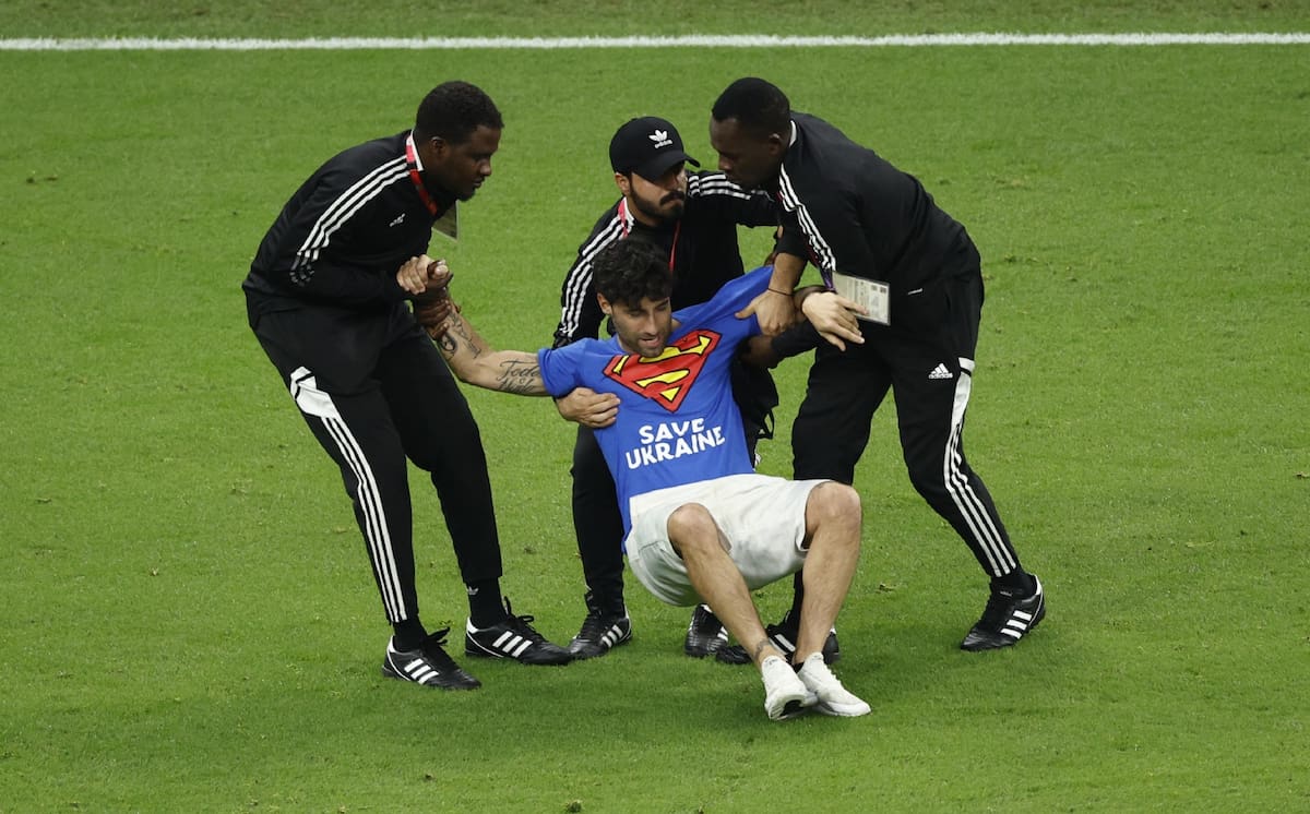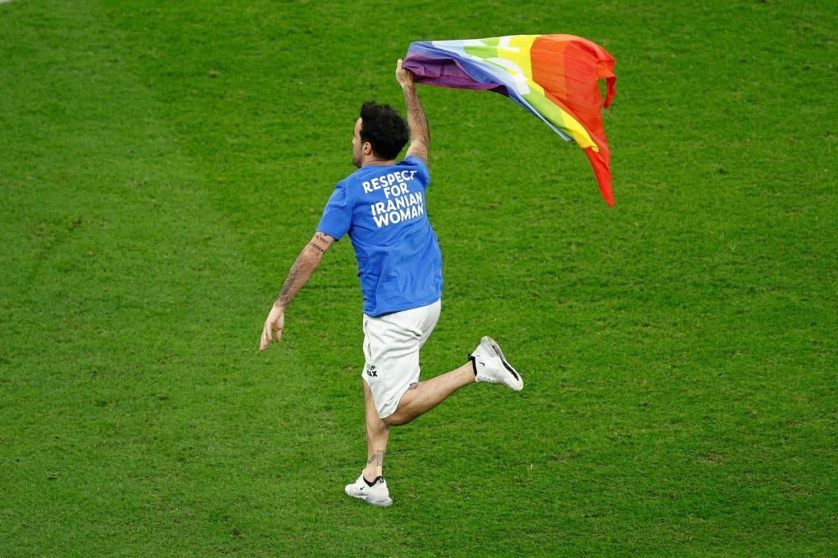 Mario Ferri fue el personaje que decidió entrar al campo para protestar contra las duras leyes que rigen el país sede del Mundial de Qatar 2022 y unos instantes después fue detenido por la policía que se encontraba en el Estadio de Lusail.