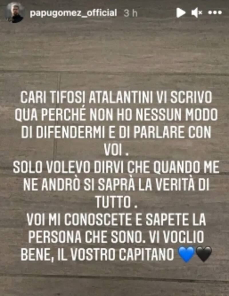 "Aficionados del Atalanta: les escribo pues no tengo otra manera de hablar con ustedes y defenderme. Quiero decirles que cuando me vaya se sabrá la verdad. Saben quien soy. Me conocen. Los quiere, su capitán", escribió a través de su cuenta de Instagram el excompañero de Mauricio Pinilla.