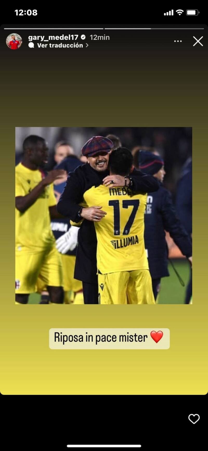Otra figura del fútbol chileno que se hizo presente en redes fue Gary Medel, quien lo tuvo como entrenador en su último etapa antes de dedicarse a luchar por su vida, en el Bologna.
