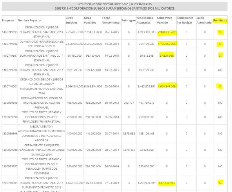 Además, el periodista mostró cuánto se gastó en otras citas deportivas que se realizaron en nuestro país, como los Juegos Bolivarianos de Playa en Iquique, que costaron casi 1.500 millones de pesos, o los Juegos Odesur 2014, que ascendieron a 6.300 millones aproximadamente.