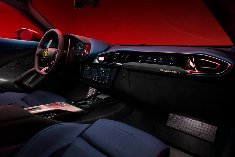 A diferencia del 812 Superfast, en la parte trasera incorpora un spoiler con dos deflectores aerodinámicos activos y dependiendo de la carga aerodinámica se abren a velocidades entre 60 y 300 km/h.