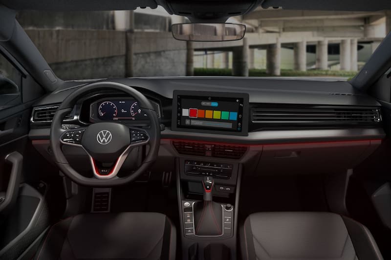 En su interior, ofrece un nuevo diseño de tablero con acabados exclusivos, asientos de cuero con costuras en rojo, iluminación ambiental personalizable y un sistema de infoentretenimiento con pantalla táctil flotante de 10,1 pulgadas. Además, cuenta con control de clima automático Climatronic Touch y volante deportivo multifunción con levas de cambio.