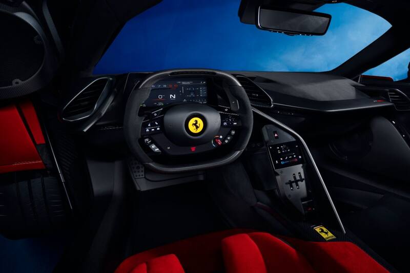 Ese resultado lo consiguió el Centro Stile Ferrari, que bajo la dirección de Flavio Manzoni dio vida a un habitáculo en forma de de burbuja compacta, pero más pequeña que en ejemplares como el LaFerrari. A eso se suma una altísima estabilidad gracias a una combinación de tecnologías como el triplano delantero, el S-Duct y un alerón trasero activo que ajusta automáticamente la posición para optimizar la resistencia y la carga aerodinámica.