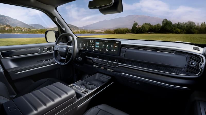 En el habitáculo, se aprecia grandes salidas de aire con un patrón de panal de abeja, volante multifunción y tablero de instrumentos central inferior moderno y minimalista.