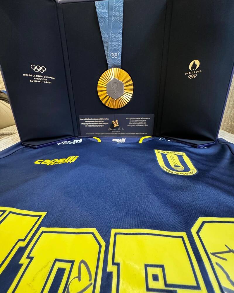 En las imágenes publicadas por la Universidad se ve a González con Adriana Ruano, siempre con la camiseta del club deportivo, además de la tricota del equipo junto a los emblemas de los Juegos Olímpicos: la mascota y la medalla de oro.