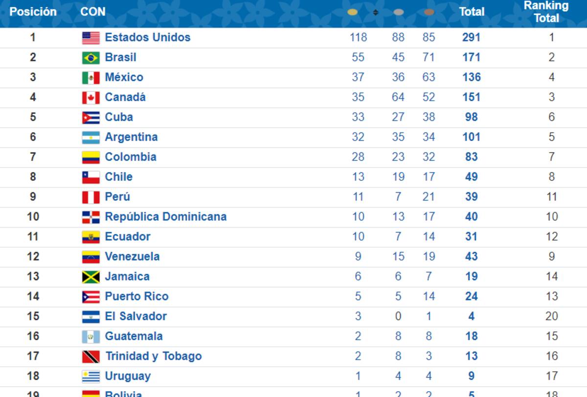 Medallero general de Lima 2019: