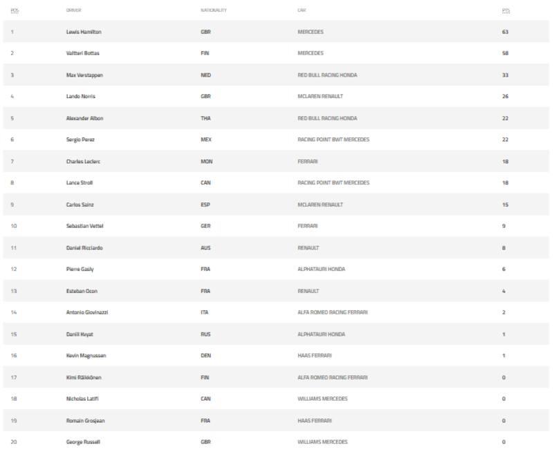 Pero más atrás, aparecen Max Verstappen de Red Bull Racing, Lando Norris de McLaren y la dupla de Racing Point, quienes tratarán de acortar distancia con los pilotos de Mercedes.